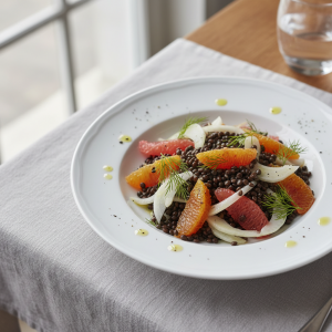 Lentilles beluga aux agrumes et fenouil