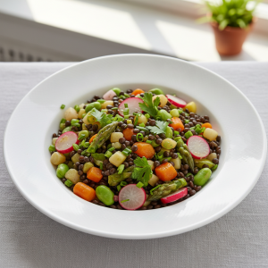 Lentilles beluga aux légumes printaniers