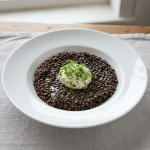 - Trempage opt. : lentilles beluga non trempées (cuisson homogène 22 min). Eau froide portée à +95°C, immersion lentilles, ébullition douce maintenue 22 min. Contrôle de texture : fourchette, cœur doit se laisser écraser légèrement sans être pâteux.