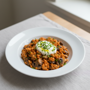 Cette recette incarne les principes de la restauration collective durable : produits bruts, cuisson basse température maîtrisée, valorisation des parures de champignons. Les lentilles corail sont un vecteur protéinique accessible, facilement approvisionnables en bio local (Languedoc, bassin méditerranéen français). Avec 20 min de cuisson, elle s’insère facilement dans les flux de production et convient à tous les régimes (végétarien naturellement).