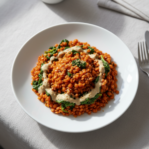 Lentilles corail aux épinards et crème de sésame (tahini)