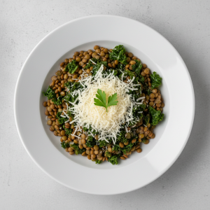 Lentilles vertes au chou frisé (kale) et parmesan