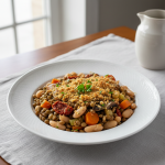 Plat phare de la restauration collective durable, cette assiette de lentilles vertes façon pistou valide les objectifs EGAlim 2022 en associant légumineuses fermières et légumes de saison en circuits courts. Riche en fibres, protéines végétales et minéraux, ce classique méditerranéen s’adapte à tous les types de liaison (chaude, froide, tiède) et à tous les régimes alimentaires. Exécution simple, impact nutritionnel fort, coût maîtrisé.