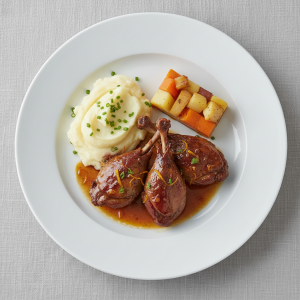 La bigarade est l’une des grandes sauces mères de la gastronomie française. Avec des manchons de canard confit de qualité (bio label rouge), elle devient un argument commercial majeur pour la restauration collective. Cette recette s’organise sur 2 jours, respecte les normes HACCP (liaison froide J-1, réchauffage +63°C), valorise les produits frais et bruts, et offre une alternative végétarienne crédible (champignons/cèpes).