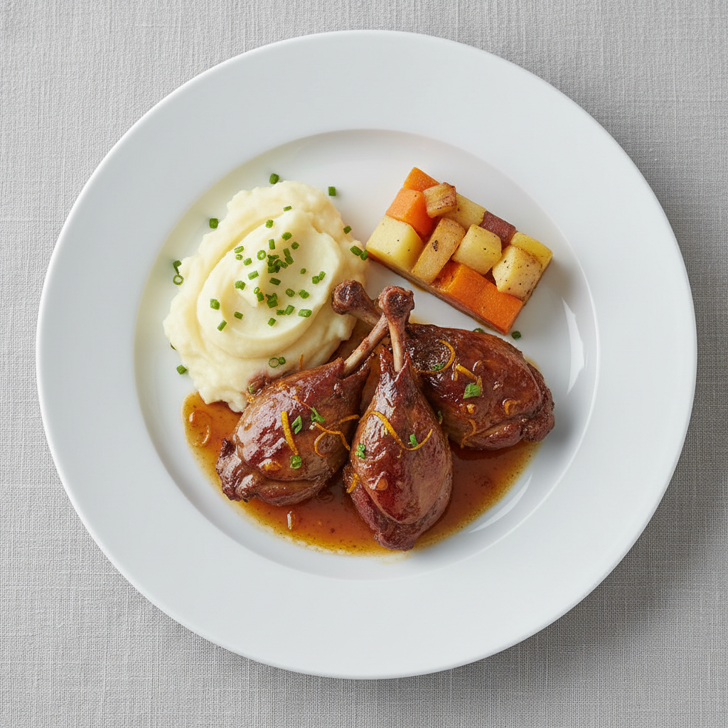 Manchon de canard confit : incontournable en restauration collective pour son rendement carcasse/viande et sa valorisation des parures. Cette déclinaison glacée orange-balsamique-miel offre une alternative premium aux viandes rouges, alignée EGAlim 50% produits durables. Technique cuisson basse température (braising 90 min) garantit tendreté, réduction gaspillage et optimisation coûts matière. Plat phare Collège La Chênaie (600 couverts/jour, certifié ECOCERT Niveau 3).