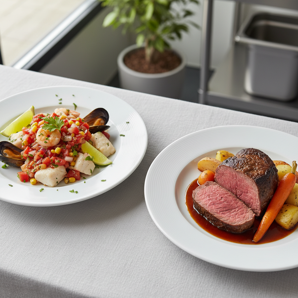 Sur le plan nutritionnel, cette préparation P1 offre un excellent apport protéique (poisson blanc maigre, féta) associé à des légumes frais riches en fibres et antioxydants. L’huile d’olive, source de bons acides gras, complète harmonieusement l’ensemble. Privilégiez les tomates et concombres de plein champ de mai à septembre (producteurs PACA, marchés de gros régionaux), un poisson MSC ou de pêche locale responsable (bar de ligne, dorade de Méditerranée), et une féta AOP pour respecter vos engagements EGAlim tout en régalant vos convives.