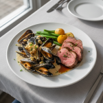 - Finition : transvaser moules ouvertes + sauce chaude dans plat creux. Vérifier température ≥+63°C immédiatement avant service. Parsemer persil frais. Servir sans délai (texture moule se durcit >2h).