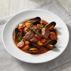 Les moules à l’espagnole incarnent le positionnement « fruits de mer frais, circuits courts, cuisson maîtrisée » : fondamental en restauration collective durable. Poisson blanc remplacé par mollusque bivalve (protéine 12-14g/100g), fort potentiel de valorisation bio et locale (Méditerranée, Atlantique). Conformité GEMRCN P1 (plats proteiques) + enjeu allergène (mollusques, sulfites) = traçabilité rigoureuse, élimination moules fermées post-cuisson.Recette zéro déchet : coquilles valorisables en bouillon, parure légumes = fond sauce.