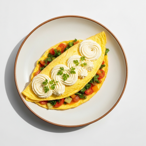 Déclinaisons : Texture modifiée seniors (bien prise, +2 min cuisson). Alternative végétarienne : garniture champignons de Paris sautés, herbes fraiches (persil, ciboulette). Variante basse température : 65°C à cœur pour texture moelleuse (+3 min). Omelette roulée 4 œufs/portion (gain capacité). Sans allergène lactose : beurre clarifié ou huile d'olive fruitée bio.