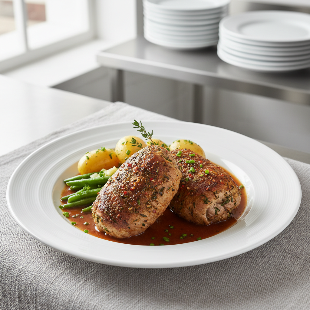 Les paupiettes de veau constituent un incontournable de la restauration collective : protéine noble, technique structurante, acceptabilité enfants/familles élevée. Le cahier des charges EGAlim impose désormais une sourcing rigoureuse en veau fermier ou Label Rouge et l’intégration de circuits courts. Cette fiche propose une élaboration 100% brute, sans produit semi-fini, compatible caisse à 2€80-3€20/portion en restauration scolaire.