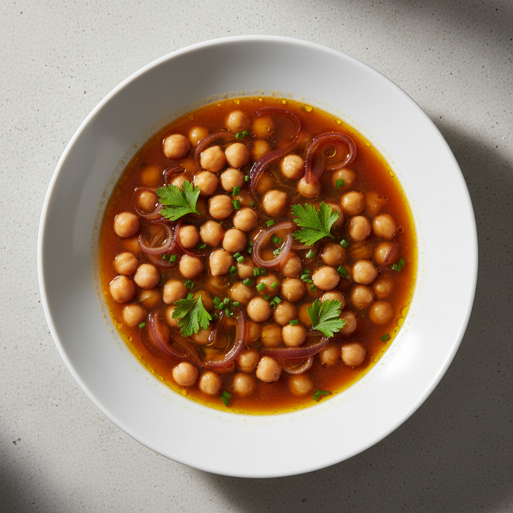 Pois chiches au bouillon corsé aux pelures d'oignons