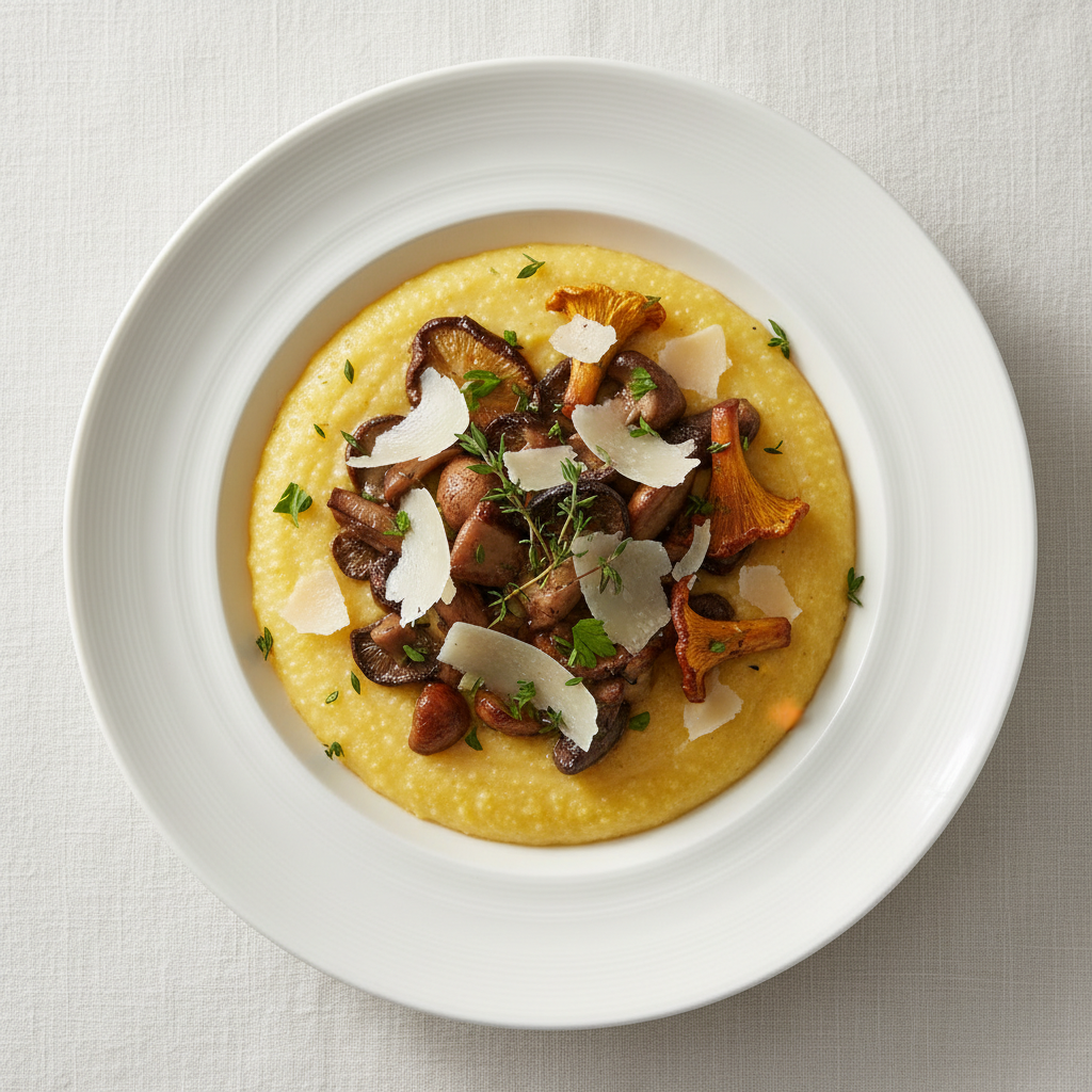Déclinaisons : Texture modifiée : polenta plus ferme (cuisson 30 min) pour enfants en difficulté de mastication. Alternative végétalienne : remplacer mozzarella + parmesan par fromage végétal affiné bio ou levure nutritionnelle. Variante sans gluten : certifier polenta sans gluten (contamination croisée). Sans lait : utiliser boisson végétale bio (avoine, riz) pour la crème de polenta.