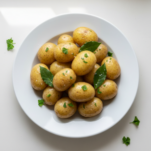 - Jour J : 30 min avant service, brossage final, égouttage. Calibrer pommes de terre (160-200g pièce pour homogénéité). Remplir bac vapeur avec 3-4 cm eau de source ou filtrée. Disposition pommes de terre en mono-couche, laurier en intercalaire (1 feuille pour 5-6 pièces). Vapeur 100°C pendant 18-22 min selon épaisseur (test fourchette : pénétration aisée sans écrasement).