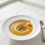 - Étape 5 (T+32min) : Lier avec 300g beurre bio + 500ml crème fraîche fermière, fouetter légèrement pour homogénéiser. Goût : sel 5-7g/kg légumes (réduit par douceur produit).