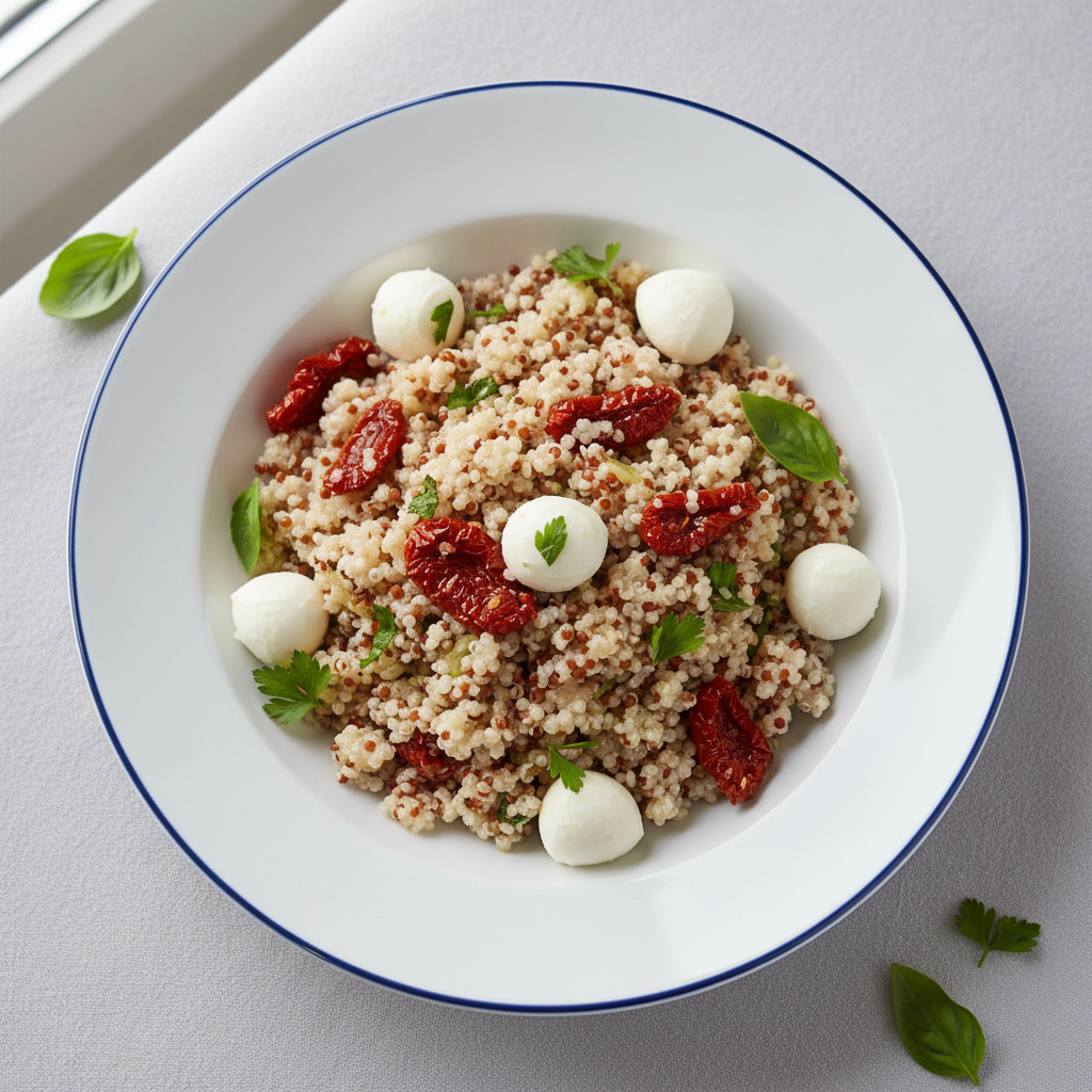 Déclinaisons : Texture modifiée : quinoa écrasé partiellement pour enfants en difficulté de mastication. Alternative végétarienne : recette de base (100% végétal). Variante bio : tous les ingrédients certifiés AB. Variante sans allergène gluten : vérifier la certification sans traces du quinoa. Déclinaison hiver : ajouter poivrons rouges rôtis ou tomates séchées au soleil.
