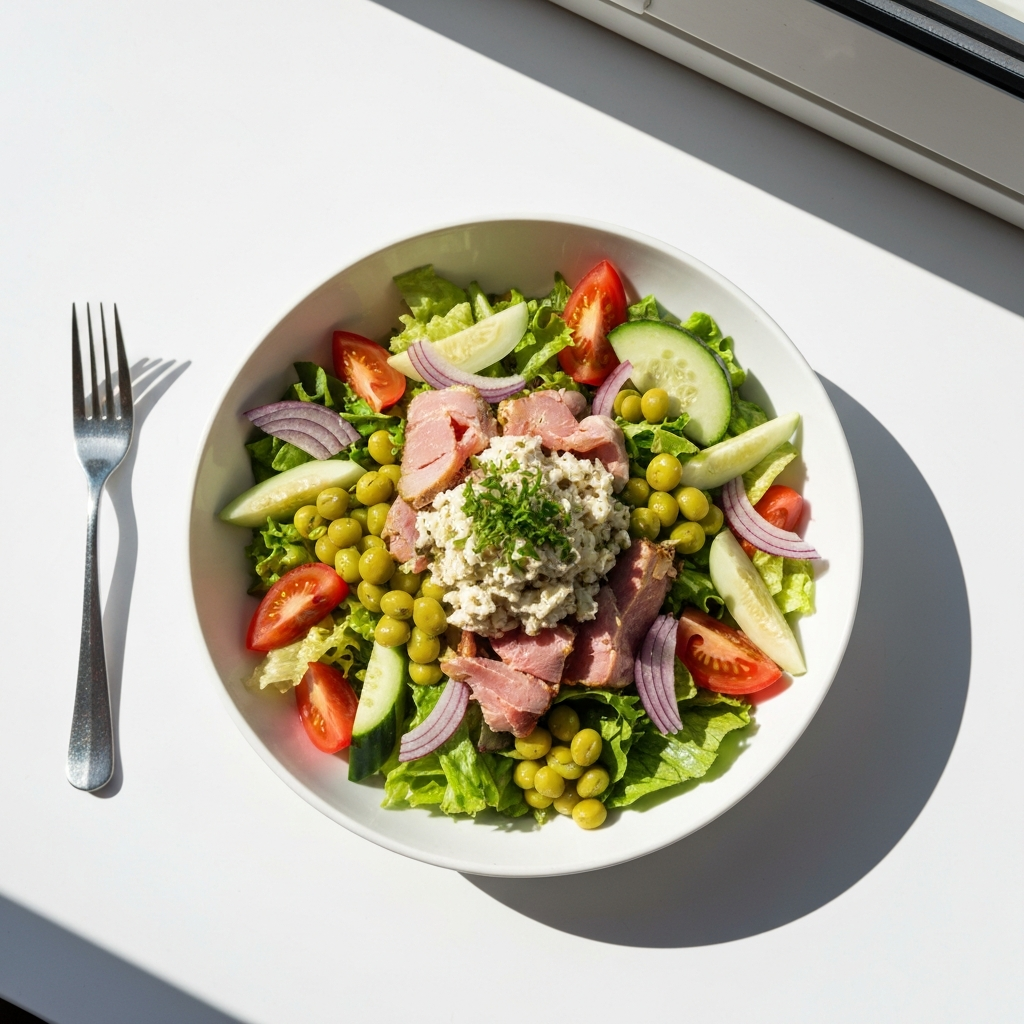 Cette Salade Armor constitue une entrée froide complète et équilibrée, particulièrement adaptée aux services d’été ou aux menus froids en restauration scolaire et d’entreprise. Respectant parfaitement la classification GEMRCN E1 (entrée de crudités sans friture, riche en protéines marines de qualité), elle offre un apport nutritionnel remarquable en fer, zinc, sélénium et acides gras oméga-3. Les déclinaisons végétariennes (tofu fumé, pois chiches, algues) permettent de répondre aux obligations de diversification protéique tout en conservant le profil iodé caractéristique. N’hésitez pas à adapter cette base avec les arrivages de votre MIN : tellines, palourdes, bulots offrent des variantes bretonnes tout aussi savoureuses. Explorez nos autres recettes de restauration collective.