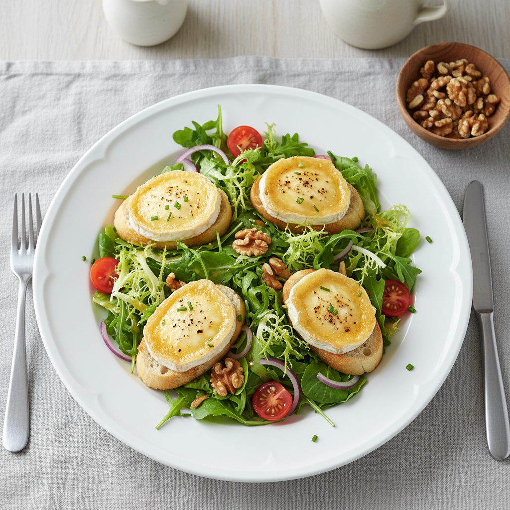 Organisation : Recette à organiser le jour J. J-0 : réceptionner la salade fraîche (contrôle température ≤+3°C, conformité vademecum MASA), vérifier la DLC. Laver et essorer la salade, décontamination obligatoire (hypochlorite sodium ≤80 ppm, rinçage soigneux). Préparer la vinaigrette en respectant le ratio 3:1 (huile/acide). Conservation salade essorée ≤+3°C, consommation dans les 2h après sortie du froid. Pas de cuisson, donc pas de point critique température. Plats témoins : prélever 80g de salade finie, conserver ≤+3°C pendant 5 jours. Économie d'énergie : aucune cuisson nécessaire, zéro dépense énergétique.