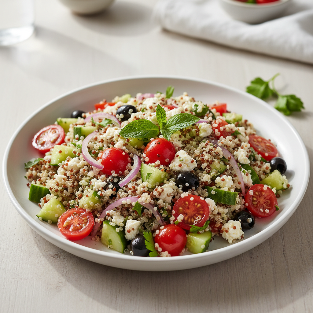 Déclinaisons : Texture modifiée : Salade en velouté (avocat mixé + quinoa écrasé) pour EH/EHPAD. Alternative végétarienne : Recette déjà 100% vegan — ajouter optionnellement pois chiches rôtis ou tofu pour protéine. Variante bio : Tous les ingrédients en ECOCERT ou Demeter, huile d'olive extra-vierge bio certifiée. Sans allergène : Remplacer vinaigrette classique par jus de citron frais + huile bio si sesame/moutarde interdit.