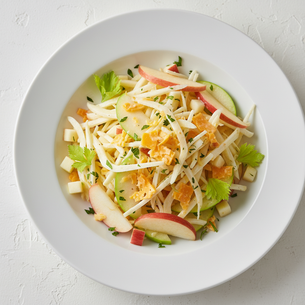 EGAlim : Conformité EGAlim : 100% bio certifié ECOCERT si approvisionnement producteurs locaux Provence-Côte d'Azur (AMAP, marchés gros régionaux). Céleri-rave et carottes : circuits courts <50km recommandés. Pommes : production française hors-réseau grande distribution. Estimation : 90% bio en valeur d'achat. Alternatives : vinaigrette à l'huile d'olive AOP Provence si budget permet ; citron bio du bassin méditerranéen.
