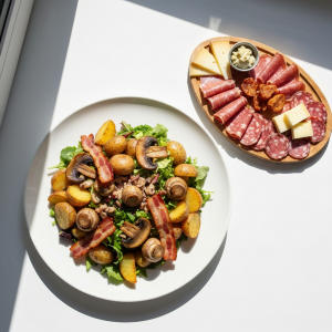 Salade de champignons, pommes de terre et bacon