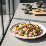 Classée GEMRCN E2 (crudités-légumes cuits), cette salade démontre qu’une restauration collective bio et écolabel n’exige pas de surcoût significatif. Sourcing local (chou-fleur AMAP, yaourt laiterie fermière) et zéro déchet transformé garantissent traçabilité et qualité nutritionnelle. À adopter au quotidien en rotation mensuelle.