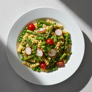 Salade de pâtes aux asperges et petits pois