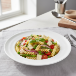 - Cuire pâtes complètes bio en eau légèrement salée (5g/L) à 96-98°C : 11-12 min selon calibre. Tester à la dent (al dente impératif). Égoutter, refroidir immédiatement à +10°C en < 2h par passage eau froide courante ou bac glaçons.
