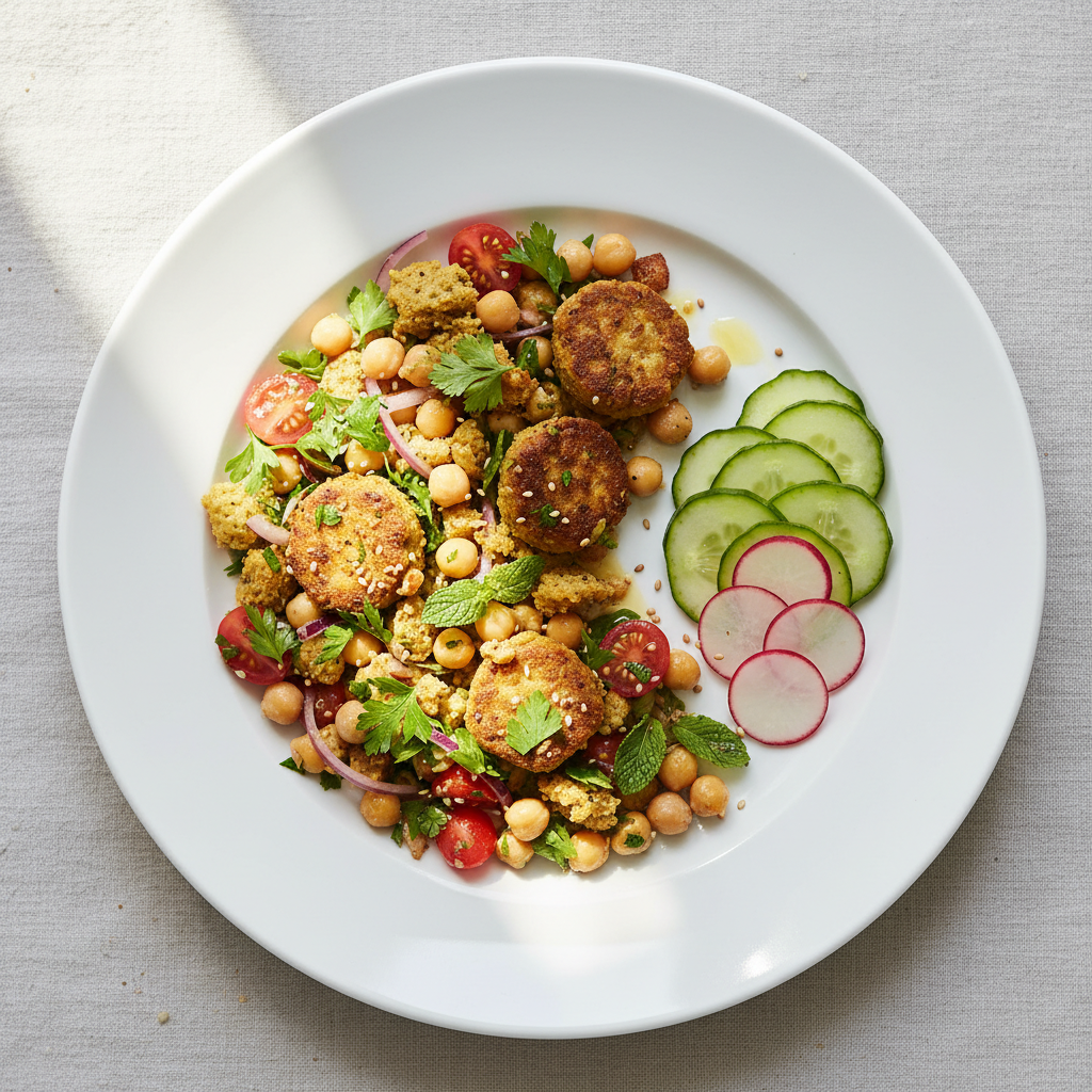 Déclinaisons : Texture modifiée E3 : pois chiches mixés partiellement (texture lisse) pour dysphagie niveau 2, yaourt plus onctueux. Alternative végétarienne : déjà vegan nature. Variante bio : tous ingrédients certifiés. Adaptation sans allergène : remplacer yaourt végétal par crème fraîche épaisse bio si allergie soja ; menthe fraîche ciselée peut être remplacée par coriandre fraîche.