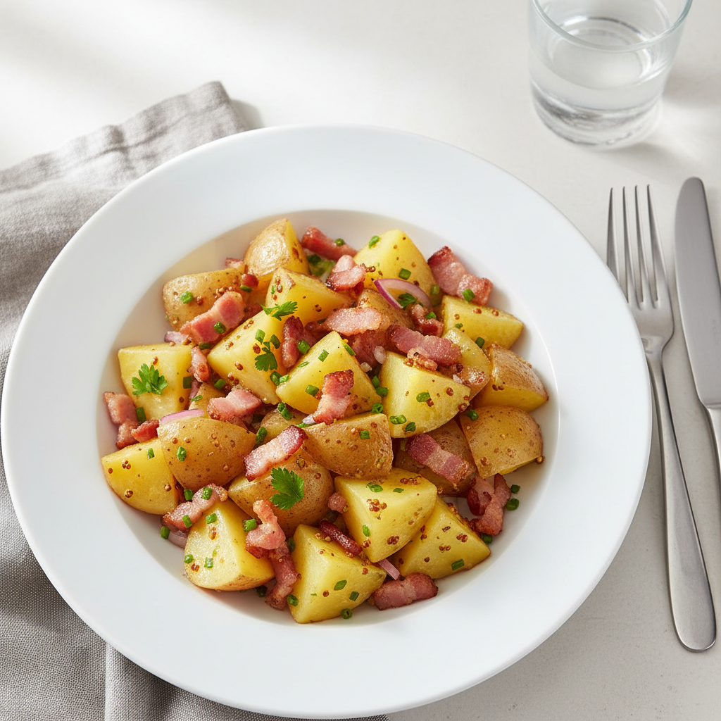 Incontournable des menus collectifs : cette salade lyonnaise respecte l’esprit EGAlim par son caractère 100% brut et sa valorisation des produits frais de proximité. Zéro transformation industrielle, zéro additif. Cuisson maîtrisée en eau de source ou filtrée (optimisation énergétique), refroidissement rapide garantissant sécurité microbiologique et maintien des qualités organoleptiques. À privilégier en circuits courts locaux (pommes de terre fermières, oignons régionaux).