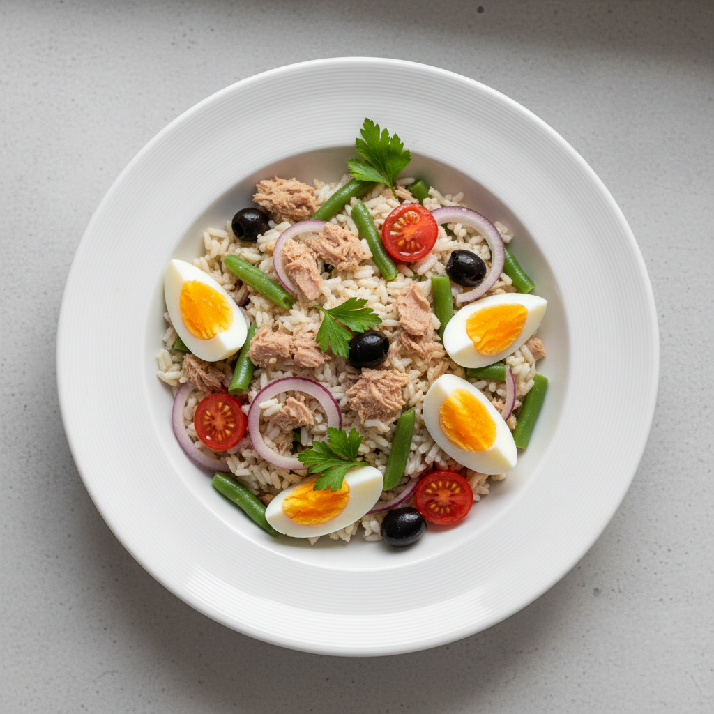 Organisation : Préparation J-1 : cuisson du riz refroidi à +3°C max en bac hermétique. Égouttage des haricots et maïs en conserve (ou frais cuisson J-1) à +3°C. Émincé des légumes frais J-1 matin, stockage séparé à +3°C. Assemblage + vinaigrette Jour J, 30 min avant service. Conservation chaîne froide +3°C max 48h post-préparation. HACCP : contrôle température bacs réfrigérés 2x/jour, date-heure de préparation obligatoire, traçabilité fournisseurs bio.