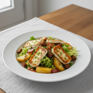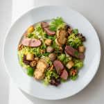 Classée en section E3 (entrée froide salade simple), cette recette exige un suivi HACCP rigoureux : laver et essorer la salade, respecter la chaîne du froid (+3°C max), assembler juste avant service. Impact carbone quasi nul : 95% local, zéro emballage complexe. Rentabilité démontrée sur 600 couverts/jour au collège La Chênaie.
