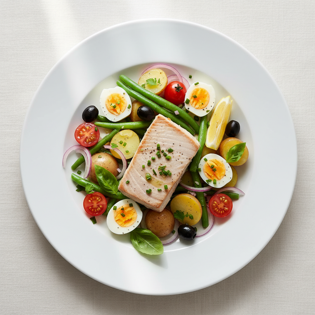 La Salade Océane incarne la simplicité professionnelle : produits nobles, technique basique, but nutritionnel clair. Parfaite pour éduquer les convives aux saveurs marines et aux protéines marines durables.