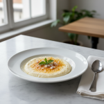 - Refroidir immédiatement à +3°C en bac hermétique alimentaire. Étiqueter : date, nom, allergènes (gluten-pain). Conservation : 3 jours max à +3°C. Bien homogénéiser avant service.