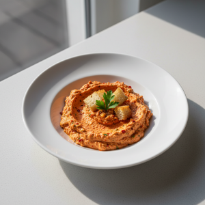 - Mixer piments rouges + ail + mie pain égoutée jusqu'à pâte lisse. Vérifier texture homogène (aucun fragment).