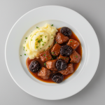 - Même poêle (récupérer sucs) : ajouter oignons émincés + ail frais 2-3 min. Déglacér avec 1 cl eau ou bouillon maison.