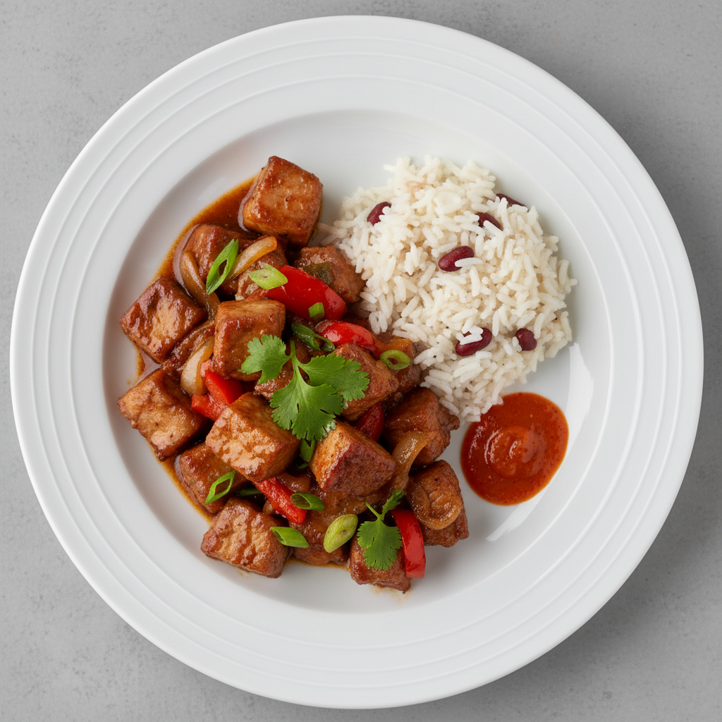 Organisation : J-1 : Préparation des légumes bruts (oignons, poivrons, ail émincés), stockage ≤+4°C en bac hermétique (DLC 2 jours). Porc découpé à température ambiante J-2. J : Sauté à cœur 65°C min (thermomètre), mijotage sauce 20 min. Service ≥+63°C. Reste refroidissement +63°C → +10°C en <2h (liaison froide).