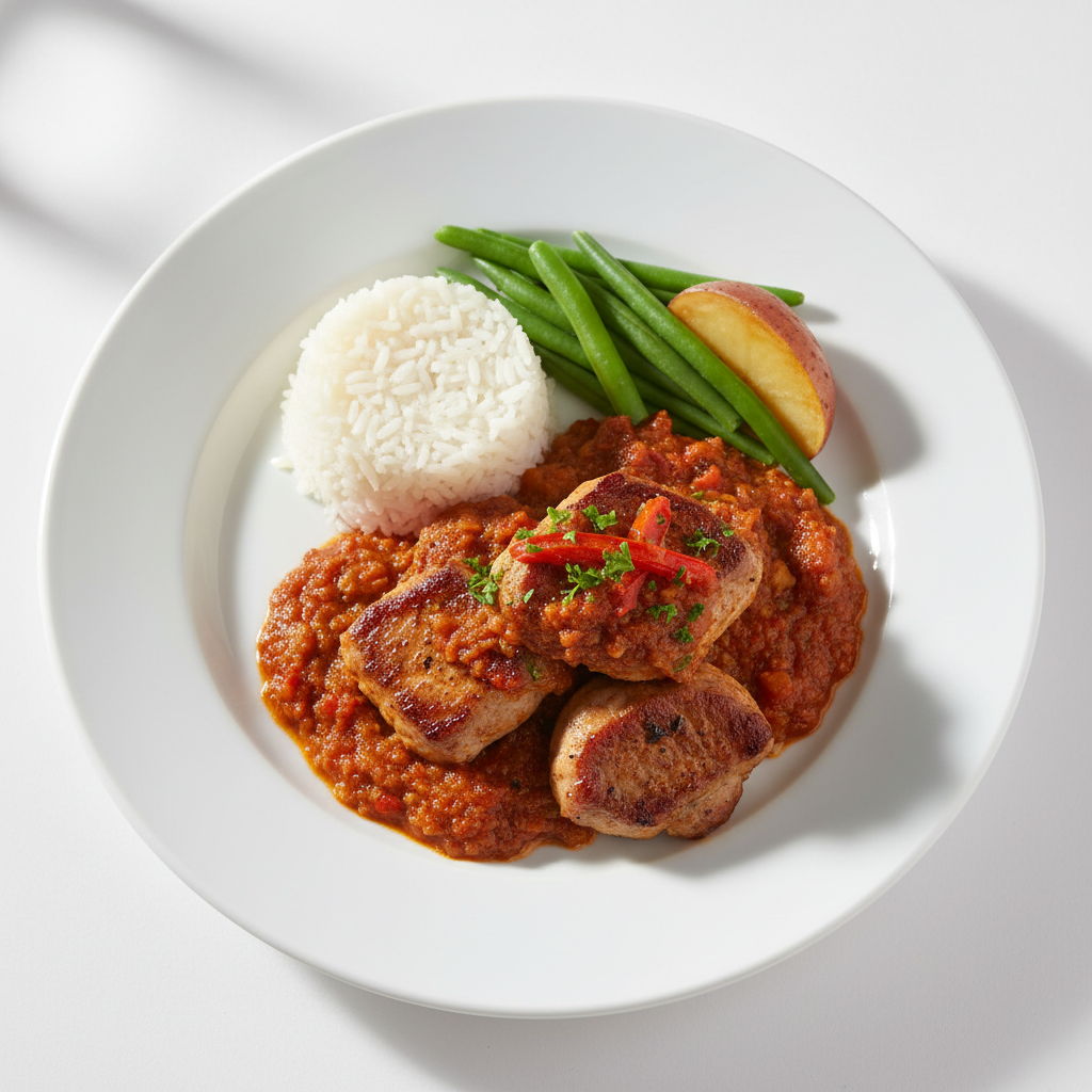 Respecte la classification GEMRCN P1 (sauté de viande avec sauce du monde). Coût matière optimisé par circuit court : porc régional, gingembre et ail bio marchés fermiers. Caramélisation maîtrisée, température cœur ≥75°C. À accompagner riz complet bio (+20% santé) ou nouilles de riz sans gluten. Alternative végétarienne tofu fumé : même protocole, même coût portion.