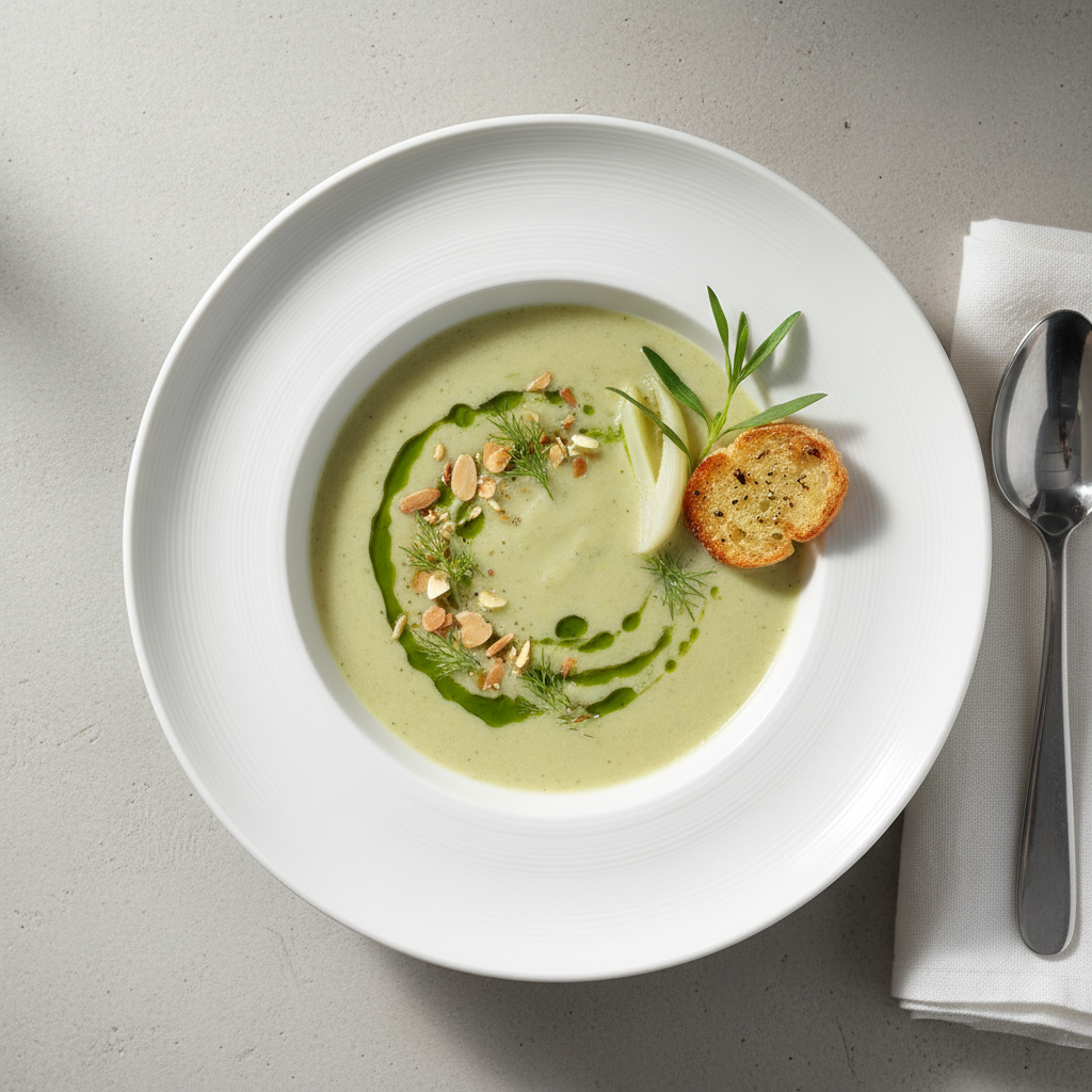 Cette soupe s’inscrit dans la catégorie E2-S (plat à base de légumes) et doit être servie à ≥63°C en liaison chaude, ou refroidie et conservée à ≤3°C pour liaison froide (max 3 jours). Privilégiez les circuits courts locaux pour les quatre légumes : producteurs directs, AMAP, ou marchés de gros régionaux. Possibilité de réduire en velouté (100% végétal) sans apport de matière grasse ou crème, conforme directives nutrition établissements.