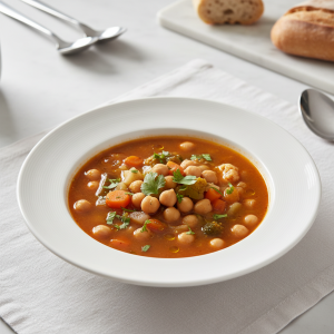 Cette soupe s’inscrit dans une démarche de cuisine durable : légumineuses sèches bio (coût unitaire optimisé), légumes de saison issus de circuits courts régionaux, zéro déchet grâce à la valorisation des parures. Recette P4 GEMRCN, sans allergène majeur si ras el-hanout certifié, adaptable à tous les régimes (vegan par défaut). Parfaite pour élèves/usagers en recherche d’alternatives carnées savoureuses.
