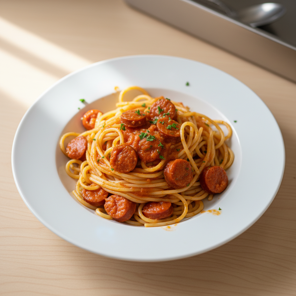 Déclinaisons : Texture modifiée : Sauce très finement mixée pour dysphagie, spaghettis coupés 5cm. Végétarienne : Lentilles corail bio cuites 20min + champignons bio émincés revenus à l'huile, même réduction 2h. Sans allergène : Spaghettis sans gluten bio (maïs/riz), parmesan remplacé par levure maltée désactivée. Variante bio : 100% ingrédients ECOCERT Excellence, vin rouge biodynamique.