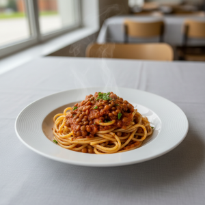 Spaghettis à la sauce tomate et aux lentilles