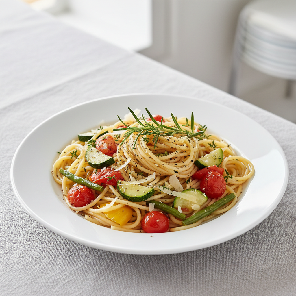 Déclinaisons : Texture modifiée : réduire temps cuisson (7 min) pour public dentition fragile. Alternative végétarienne : idem (recette d'origine). Alternative vegan : remplacer beurre par 200g huile d'olive bio première pression à froid + levure nutritionnelle 20g (umami). Sans gluten : pâtes sans gluten Drupala ou similaire (AB), cuisson +2 min.