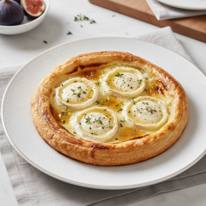 Déclinaisons : Texture modifiée : compote de pomme bio à la place du miel pour enfants en difficulté de mastication. Alternative végétarienne : déjà 100% végétal. Variante vegan : remplacer chèvre par crème de noix ou fromage végétal bio, miel par sirop d'agave bio. Adaptation sans allergène (gluten) : utiliser pâte brisée sans gluten bio certifiée.