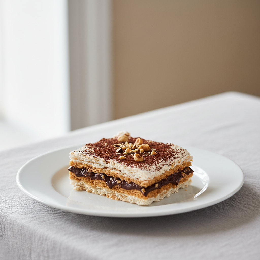 Déclinaisons : Texture modifiée : dacquoise fondante (cuisson réduite 20 min) pour résidents âgés. Alternative végétarienne : dacquoise identique, crème au beurre classique. Sans allergène arachide : amandes seules, vérifier traçabilité usine. Sans gluten : certifiée naturellement.