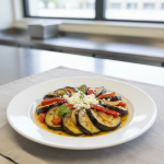 Plat légumier GEMRCN « Courgettes et aubergines » à intégrer systématiquement en menu d’été bio. Excellent ratio nutritionnel/coût. Opportunité de partenariat producteurs locaux (AMAP, vergers régionaux). Prévoir valorisation des parures (bouillon, coulis) pour zéro déchet en cuisine.