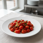 - Cuisson : enfourner 100°C pile (vérifier thermomètre four), 2h minimum. Observar à 1h30 : tomates doivent être souples, légèrement ridées, jus concentré translucide.