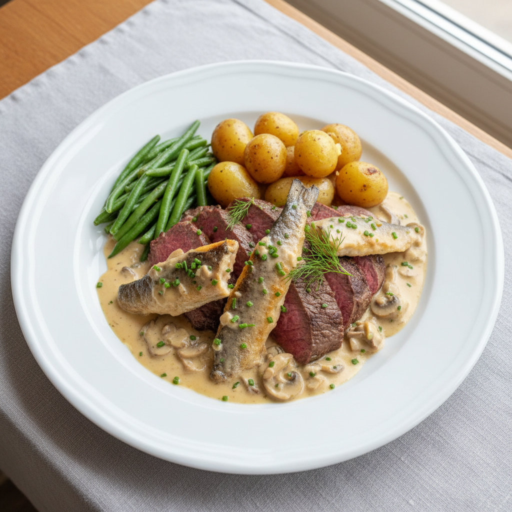 Déclinaisons : Texture modifiée : filets en petits portions pour texture ultra-tendre, sauce moutarde à part (dys-phagie). Alternative végétarienne : remplacer truite par steaks de légume bio (champignon, chou-fleur) avec même croûte moutarde-chapelure. Variante sans gluten : chapelure certifiée sans gluten ou miettes de pain sans gluten bio. Adaptation sans moutarde : sauce béchamel légère ou jus citronné bio.