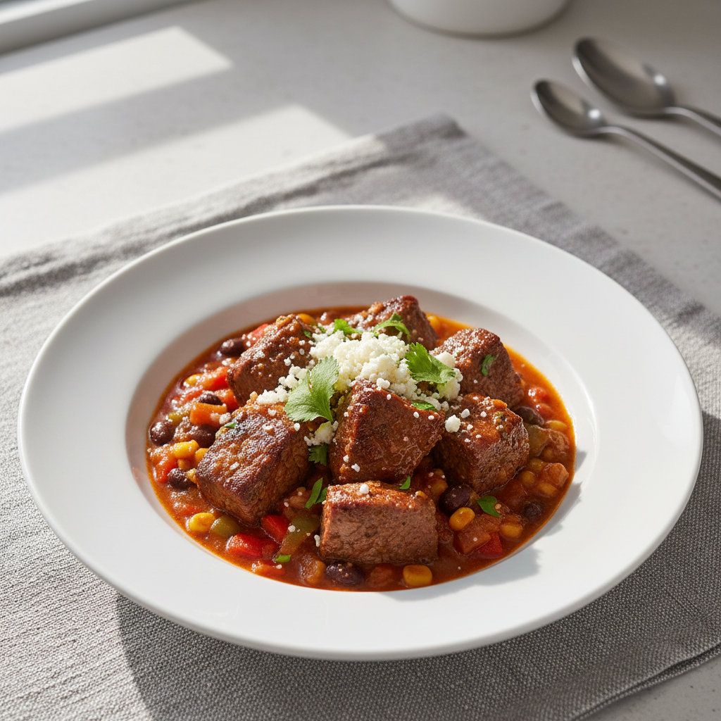 Le veau à la tex-mex est un classique culinaire revisité pour la restauration collective : rapide (18 min sauté), économe en énergie et facile à dimensionner (600 couverts). L’épaule émincée fine cuit à basse température (70°C cœur) pour préserver tendreté et humidité. Sauce tomate fraîche + haricots rouges bio constituent la base EGAlim (produits durables). Alternative végétarienne immédiate : tofu nature ou lentilles corail.