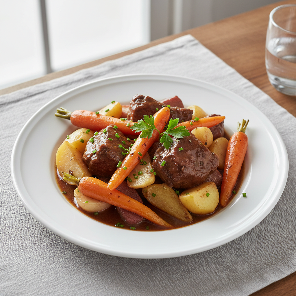 Le braisage au vin rouge est une technique structurante en restauration collective : elle transforme les pièces d’épaule de veau, moins onéreuses que les côtes, en plat noble et rassasiant. Cette recette répond aux obligations EGAlim (produits fermiers bio, circuits courts) et optimise le rendement : les parures deviennent fond, les lardons fermiers renforcent l’umami naturel. Cuisson basse température (180°C max) préserve les protéines et minéraux.