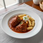 - Sauce : Déglacé vin blanc sec (20cl/4pers) ou eau + tomates fraiches concassées (400g/4pers). Ajout oignons, poivrons, ail, origan frais (15g/4pers). Cuisson douce 25-30 min à 70-75°C.